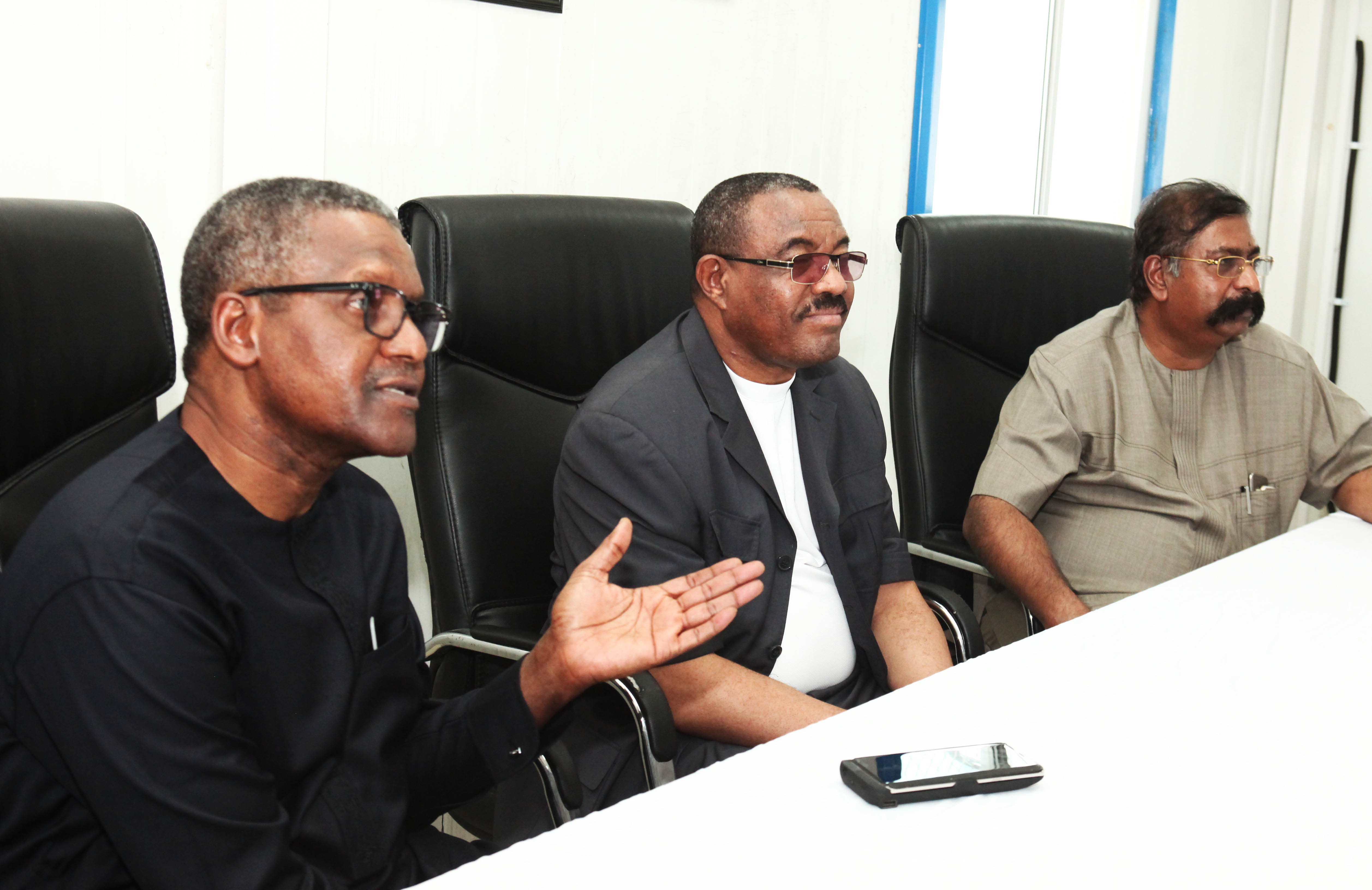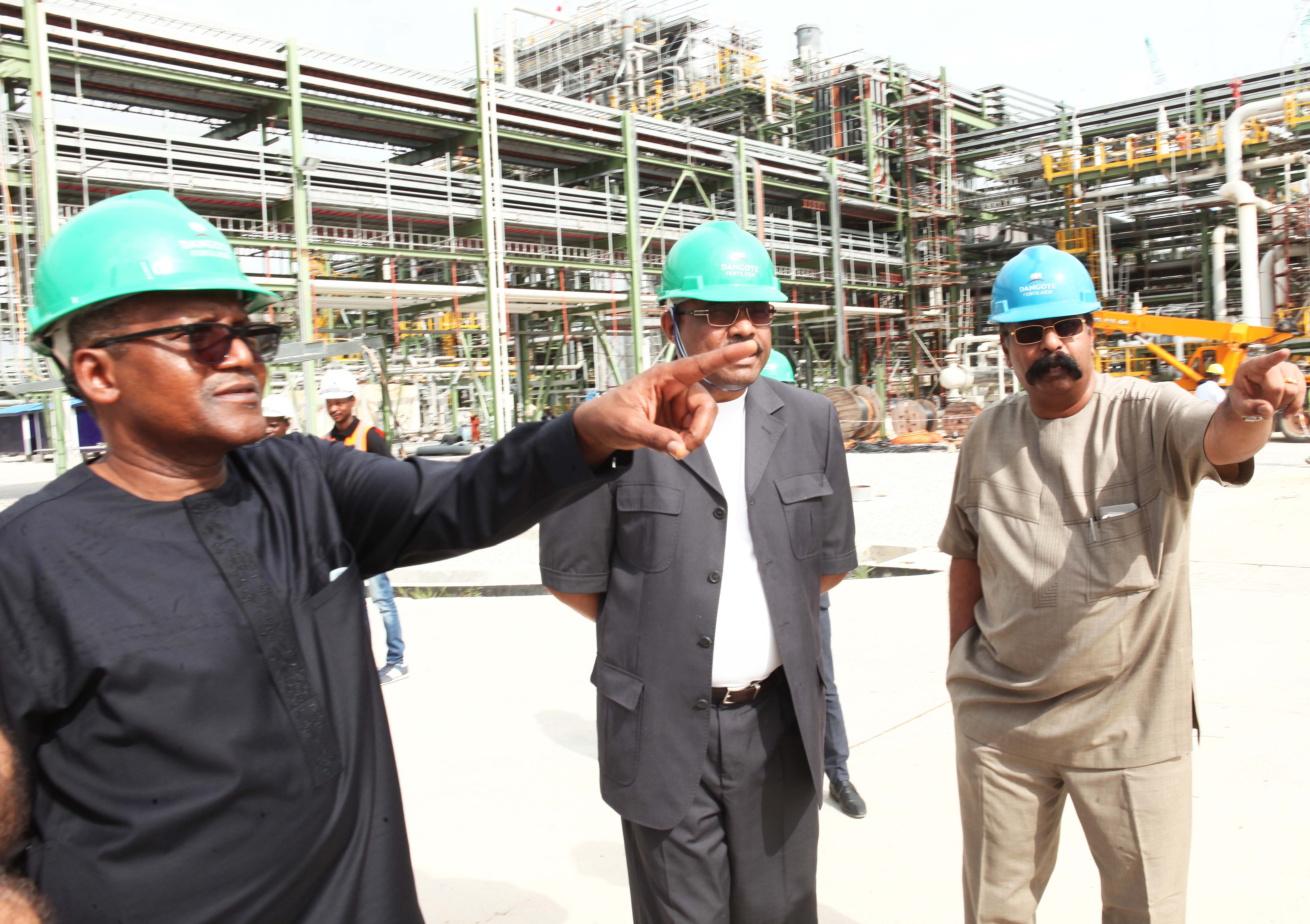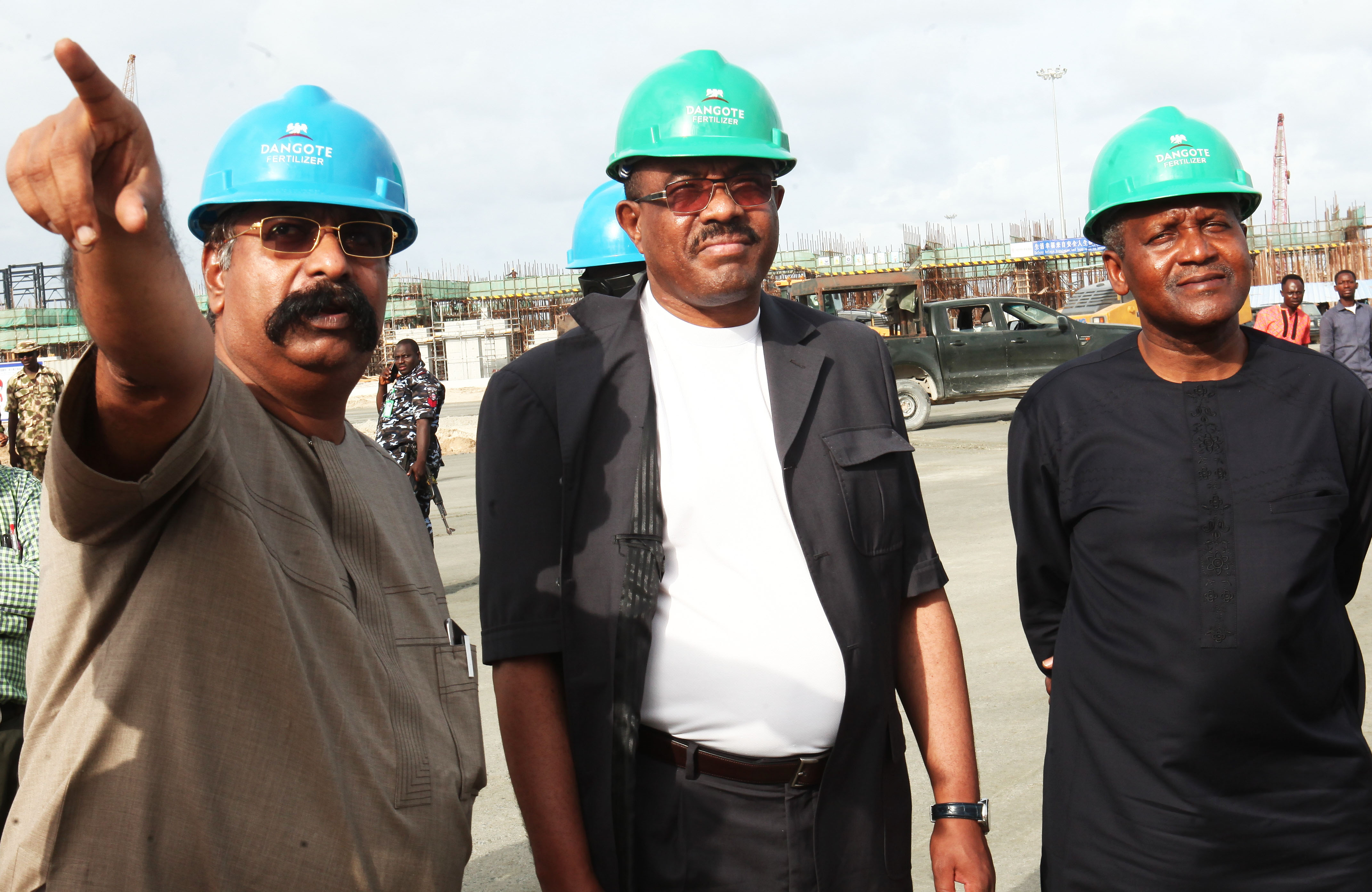 L-R: President/CE, Dangote Industries Limited, Aliko Dangote; Former Prime Minister of Ethiopia, Hailemariam Desalegn; and Group Executive Director, Strategy, Capital Projects & Portfolio Development, Dangote Industries Limited, Devakumar Edwin during the Former Prime Minister’s visit to the Dangote Refinery and Fertilizer Projects in Lekki, Lagos on Friday, April 26, 2019 (Source: Dangote Group | 6 years ago) |